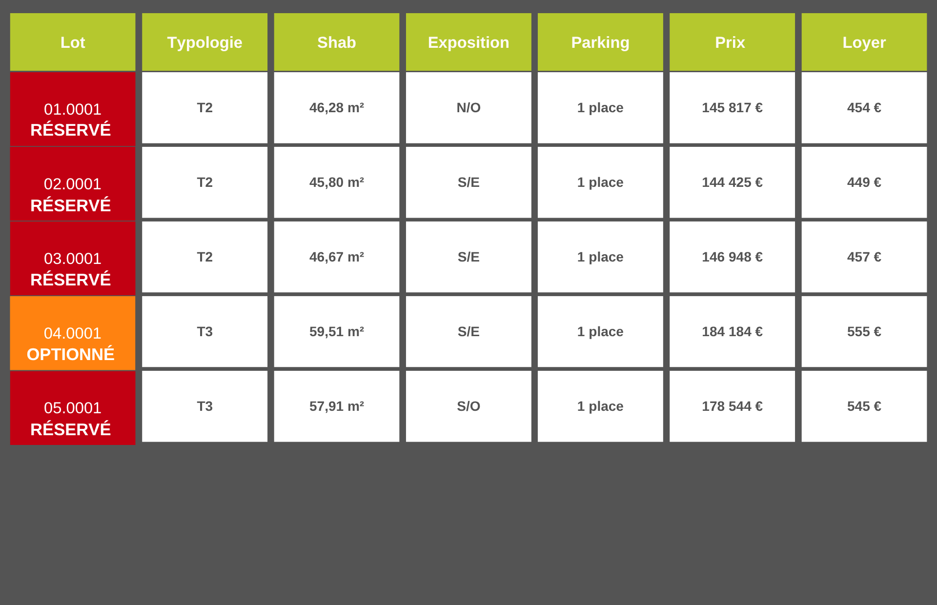 - Chaque appartement disposera de sa place de parking couvert et semi-enterré à ouverture sur ordre de commande.